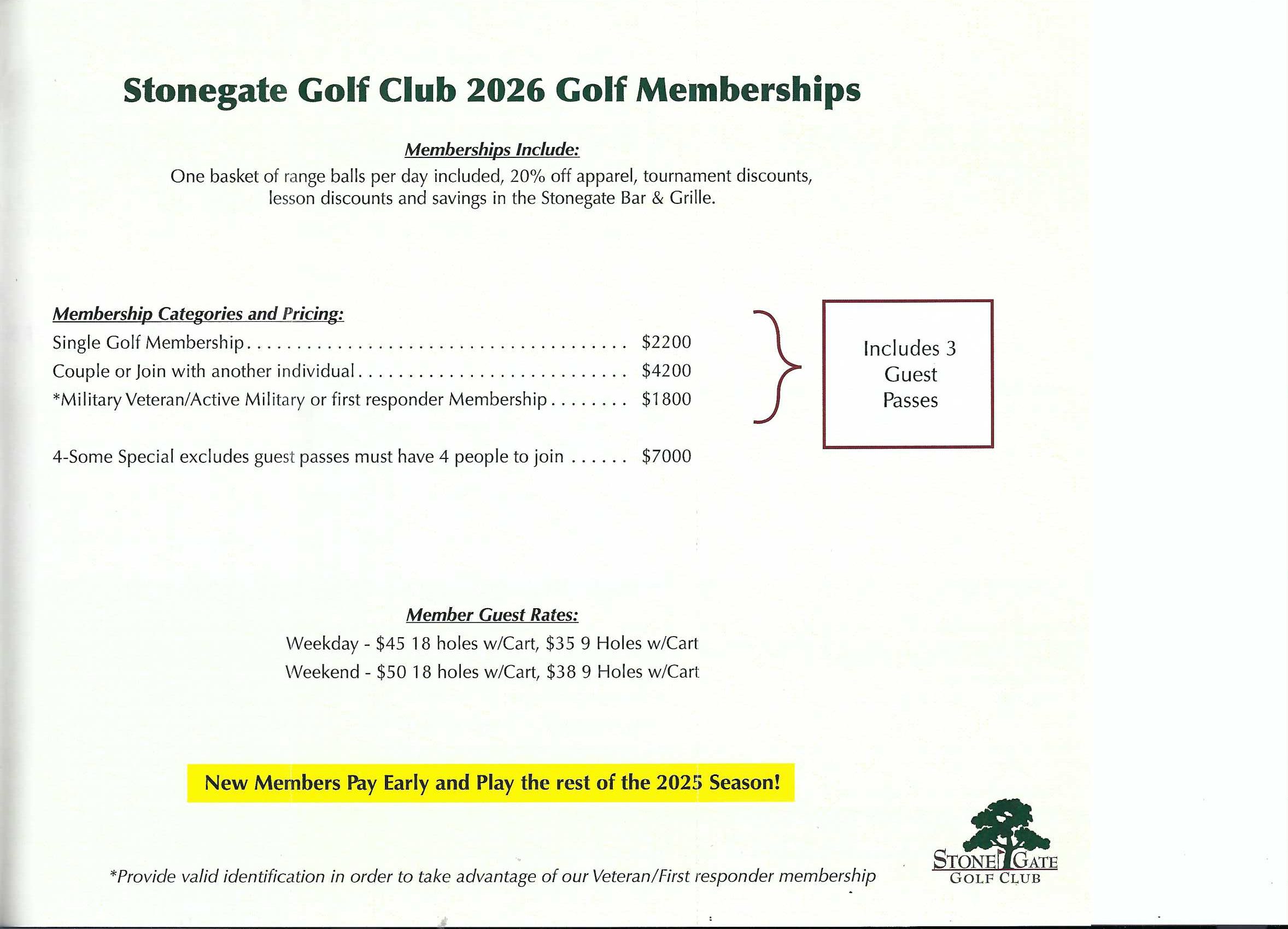 - Pro Shop Discounts of 20% off Apparel,